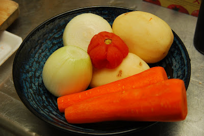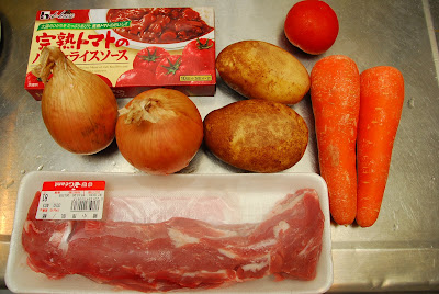 材料~馬鈴薯2pcs~紅蘿蔔2pcs~洋蔥2pcs~里肌肉400g~蕃茄一顆~